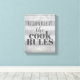 Den här köksmuren är på utsträckt duk med sött humoristiskt citat regler på grått rand. Väggkonst för köksdäck.