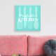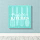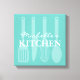 Köksverktyg för matlagning, vägg konst inslagen duk. Dekorfärg med elegant, typografi och spatel knivar med spatel/pipett. Bakgrund för Aqua/Turcos blue eller anpassningsbar färg. dekorationer för bakning och tillagning av personlig för hem, kontor, livsmedelsdomstol eller gourmetrestaurang. Tillbehör till anpassadet för trendigets moderna insida.