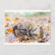 Kokt hedgehog ljugande på löv under lågsäsong vykort