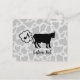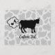 Teckning av en ko som släpper gas. Sömlöst mönster i bakgrunden. Vektorelement med helt anpassningsbara färgfyllningar. Anpassad text på båda sidor.