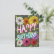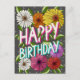Kolgrå Blommig Personlig Glad Födelsedag Vykort