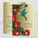 Vacker turkos blågrön kolibri och röda hibiskusblommor guld 50-års bröllopsdag festinbjudningar.