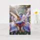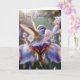 Kolibri som stänker i en lila iris kort