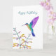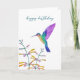 Födelsedags kort med en handmålad kolibri och blommor. Insidan är tom för din egen handskrivna hälsning.