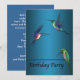 Vackra färgglada kolibris tealblå födelsedagsfest inbjudan mall. Anpassa baksidan med dina festdetaljer.