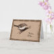 Jag skapade denna design, genom att förlägga min kolteckning av en fluffig lite fågel på en grafisk bakgrund av trädskället. Ord på bekläda och insidan är anpassadet.