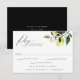 Elegant vattenfärgen botaniska citrusfrukter och blommigt gren, bröllop OSA med valmöjlighet att äta. Baksidan av kortet som visas i svart kan anpassas.
