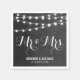 Chic moderna bröllop-pappra servetter med en enkel elegant glödande sträng ljus som hänger över överkanten och en klassblandning av modern och kalligrafisk manusskrift typsnitt på en utskriven bild av vattenfärgen struktur. En enkel och snyggt, perfekt till sommaren! Klicka på knappen CUSTOMIZE IT för att anpassa typsnitt, flytta texten och skapa din egen unika inbjudan av typen one-of-a-natura-modell.