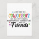 Denna design firar de oväntade vänskap som formats på arbetsplatsen. Den erkänner på ett lekfullt sätt att även om arbetet från början förde människor samman som kollegor, var det det delade skrattet, de ofiltrerade samtalen och det obekymrade humorn som verkligen förankrade deras band som vänner. Denna citat resonerar med alla som har hittat en sann vän i en kollega, någon som förstår den dagliga malningen och uppskattar en bra dos olämplig humor.
