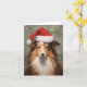 Färgfull och glatt juldesign med en Collie som bär en julhatt.
