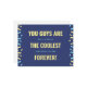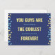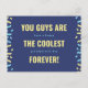 Fira det speciella band du med dina morföräldrar med det här djärva och lekfulla vykortet. Den här designen är fylld med roligt och energi och har en marin blå bakgrund, glad gult och konetti-stil-accenter i blått och gult. Det upplyftande budskapet "Ni är de coolaste för alltid" gör det till ett perfekt sätt att visa er uppskattning och kärlek på morföräldrarnas dag. Det är en hjärtefråga att de ska ta på sig fullt.