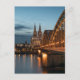 Staden Köln (Köln) med berömd-katedralen och bron i Hohenzollern vid floden Rhen i westerna Tysklanda Europa. Fotograferad under blå timme.
