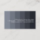 Graderade paneler av färg som spänner från svart till dimmiga grå färg, gör ett ombrefundament för denna visitkort för safirOmbre paneler. Enkelhet är nyckeln i typbehandlingen, som färgen gör visitkorten att stå ut. Passande för ett nummer av ockupationar och affärer som kan inkludera branschen, inredingsdesignen eller konsultera för skönhet. Tillgängligt i omväxlande färger med att matcha produkter.