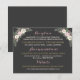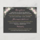 Presentera din mottagning, boende och bröllopswebbplatsinformation på detta eleganta detaljerkort med hörnblomsterarrangemang av rosa rospeonior och salvia grönska på en rik kolbakgrund. Rosa kalligrafiska rubriker och krämfärgad text skapar en vacker organiserad layout mot den mörka bakgrunden. All text är helt anpassningsbar. Designad för att samordna med den matchande kolflorala sviten.