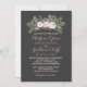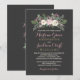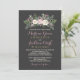 Denna slående bröllopsinbjudan har en frodig blomsterbukett av rosapink peonior, krämfärgade rosor och salvia grönska ovanpå mjuk rosa kalligrafi och krämfärgad serif-typografi på en rik kolbakgrund. Den dramatiska mörka bakgrunden skapar en vacker kontrast med de känsliga blommorna och den romantiska texten. All text är helt redigerbar för att anpassa namn, datum, lokal och festdetaljer.