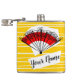 Kvismisk design som ritas i en reflektor stil med en lacy fläkt souvenir från en spansk helgdag på en gyllene gult, rand bakgrund. Ett anpassade i svartvitt, vitt, rött och gult som du kan anpassa med egen text, bilder och egna idéer. En originalbild av digitala konster.