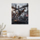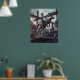 Dynamisk och energisk visar denna kolvkraftade kängurudesign en mekanisk pungdjursart mitt i ett skutt med förstärkt stålplåt, hydrauliska bakben, exponerade kolvar, glödande ögon och en metallnätspung. När den hoppar över ett stort nätverk av rörledningar med tankar, ventiler, gångbryggor, ångventiler och drivande gnistor, exploderar scenen av rörelse och industriell kraft. Perfekt för gym, kontor, studior och moderna interiörer. Ett djärvt val för fans av ingenjörskonst, australiensisk vilda djur och futuristiska mekaniska djur.