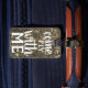 Metalliska guld faux glitter-gnistor i bakgrunden. Fet, vit text säger "kom FLY with ME" Svart och vit textmall på baksidan är lätt att läsa och anpassa till din information. Finns i många andra glatt färg och söta Travel Queen ord.