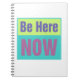 "Vara här nu" i Blue, Rosa. Gult och skalning på en fodrad journal eller bärbar dator.