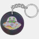 I den här roligtens sci-fi-illustration av Richard H. Fay, kör utomjordingar i groovy grönt i en flygande sås som dekorerats med blommor, hjärtan, en stjärna och en regnbåge.