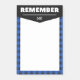 Coola anteckningsblock med blå buffelbakgrund och "kom ihåg" skrivet i fetstil, vitt brev. Anpassa med initialerna.