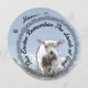 Det här hälsningskortet innehåller en digital bild av ett lamm som visas över ett foto av moln i blå himmel. En blommigt gräns omger rundan. Ord, "I Påsk minns du Guds lamm", kurvor kring den övre halvan av rundan.