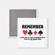Har du borta på bron i bord, i storleksordningen -400, -500, -800 osv.? Låt din bryggspelare visa med den här magneten med de fyra korten kostym tillsammans med följande påminnelse: "Kom ihåg att det finns minst tusen sätt att dö på Bord vid bron." Ingen behöver vara en bryggspelare eller brygglärare för att njuta av denna påminnelse från ljud om att bron verkligen är ett humbling-spel!