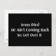 Dags att sluta vara en religionstittare genom att låtsas att du inte märker masshysteri som pågår bland fårskocken. Väck dem med dessa ord "Jesus dog. Han kommer inte tillbaka. Så kom över det."