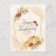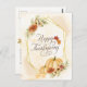 Thanksgivingens vykort för anpassningsbar av inspirationsincitattecken visar en enkel blommigt för vattenfärg, inklusive en elegant guld geometrisk ram med höstblommor, löv och pumpor. Baksidan har Bible Verse Psalm 95:2, "Låt oss kom in i hans närvaro med thanksgiving."_
