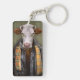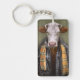 Denna design presenterar ett porträtt av en ko i en läderjacka och scarf.