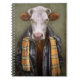 Denna design presenterar ett porträtt av en ko i en läderjacka och scarf.