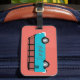 Kombi Van i blått och orange med ett namn som kan vara personlig för dig eller för en gåva. Bakgrunden är i orange med van huvudsakligen blue. Namn har ett modernt typsnitt.