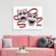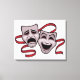 Vektorillustration av komedi- och tragedismasker med rött band.