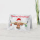 Skicka familj och vänner detta unika "en av en sort" komiska långhornade stut julkort! Det har en komisk långhornad stut som bär en julhatt och julprydnader...Önskar alla en "MÖ"~EY JUL...och ett GLATT "MÖ"-NYÅR!