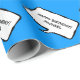 Komiskt tal bubblar grattis på födelsedagen som slår in papper.
