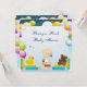 Roligt och färgrikt komma med inbjudan för en bokbaby shower för pojkar med en gullig lycklig pojke med blåttmuffins som sitter på en hög av bokar. På antingen sida av honom är en hög av bokar med en gullig nätt nalle på en och den rubber ankan på annan. Det finns en härlig färgrik ballongbakgrund. Dessa ljusa och gladlynt inbjudningar dekoreras på båda sidor. Alla av text är fullständigt anpassadet som möter dina behov, och du kan ändra stilsortsstilen, att färga och format av stilsorten om dig lust. Om du behöver någon hjälp som skräddarsy din produkt, behar kontaktar mig till och med mitt lager och, jag ska är lycklig att hjälpa. Baby från resaleclipart.