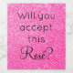 Stilren, trendig, flickig "Will you accept this Rosé?" vinetikett med en rosa glitter gnistrande bakgrund och svart text.