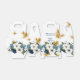 Elegant, romantisk och vacker vattenfärgsinformation om blommigten i dammblått, kobolt och vitt. Anpassade Kommer du att vara min bridesaid-typografi, pars initialer och bröllop-datum på vit bakgrund med dammiga guld stänk genom hela affären.