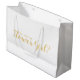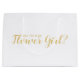 "Kommer du att bli min blomma flicka?" Modern Script White och Guld Gift Bag med titeln "Kommer du att bli min blomma flicka?" i guld, det moderna skriptteckensnittet stil på vit bakgrund. Obs! Folidinformationen simuleras i teckningen. Ingen folie kommer att användas under tillverkningen av denna produkt.