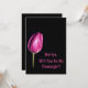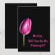 Tryckt med rosa tulpanblomma i fast svart bakgrund med mall för "Kommer du att vara min blomma?", gör det till ett mycket söt- och blommigt kort för bröllop!