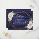 Det här toppen söta vykortet är perfektens sätt att fråga "kommer du att bli min brudgumm?" Utformningen har ett chic guld-folie geometriskt ram med typografi av trendiget och vattenfärgblomning av blommigt på en marin blå träbakgrund. De här vykorten är lätta att anpassa och kan användas för att be dina kära om att vara din brudgumm, din mässa eller hedersbetygelse, din blomma etc.