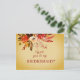 Vattenfärgsfärgad blommigt inslag på vacker höst färger, som är placerad över en bränd guldfärgad elfenbensduk, avslutat med elegantens rödfärgade kalligrafi på hösten. Resultatet är en vacker designmatris som passar både avslappnader och mer formella bröllop-teman. Perfekt för hösten eller hösten bröllop.
