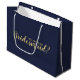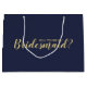"Kommer du att bli min bridessa?" Modern Frieri presentsäck har titeln "Kommer du att bli min Bridesmaid?" i guld, det moderna skriptteckensnittet stil på marin blå bakgrund. Obs! Folidinformationen simuleras i teckningen. Ingen faktisk folie kommer att användas vid skapar av denna produkt.