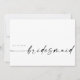 Denna minimalistiska utformning är perfekt för den moderna bruden! Med ett handskrivet namnteckning skript parat med ett enkelt sans-serif-teckensnitt. Anpassa med ditt eget meddelande på baksidan, eller beställ tomma meddelanden och skriv ditt meddelande. Kolla in butiken för matchande Maid/Matron of Honor-kort!