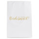 "Kommer du att bli min bridessa?" Modern Script White och Guld Bridesmaid Frieri Gift-påse med titeln "Kommer du att vara min Bridesmaid?" i guld moderna skript font stil på vit bakgrund. Obs! Folidinformationen simuleras i teckningen. Ingen faktisk folie kommer att användas vid skapar av denna produkt.