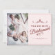 Kommer du att bli min brudtärna? Tre ljugande brudtärnor med buketter i mjuka rosor framför ett fönster. Bakktexten kan justeras i mallen. Foto av Valerie Elash
