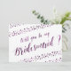 Kommer du att vara mina briljantkort med lila glitter (faux, tryckt som en bild) och konetti och anpassningsbar lila text, där du kan lägga till din och Bridesmaids namn, tryckt på vit bakgrund