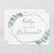 Det här söta kortet är perfekten att fråga "kommer du att bli min brudgummi?" Utformningen har en chic silver-folie geometrisk ram med typografi av trendiget och lush-vattenfärgen eucalyptus greenery. De här korten är lätta att anpassa och kan användas för att be dina kära om att vara din brudgumm, din mässa eller hedersbetygelse, din blomflicka osv.