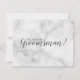 "Kommer du att bli min Groomsman?" Minimalistisk Elegant Vit marble Script Card med texten "Will you be My Groomsman?" i grått modern script font stil med vit marble-bakgrund på framsidan, med grått personlig text på baksidan.