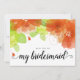 "Kommer du att bli min bridesaid?" orange etherblommor blommigt vår bröllop kort. En söt design som visar blommor i orange med grönt lövs och kursivt skript stil handskriven kalligrafi.